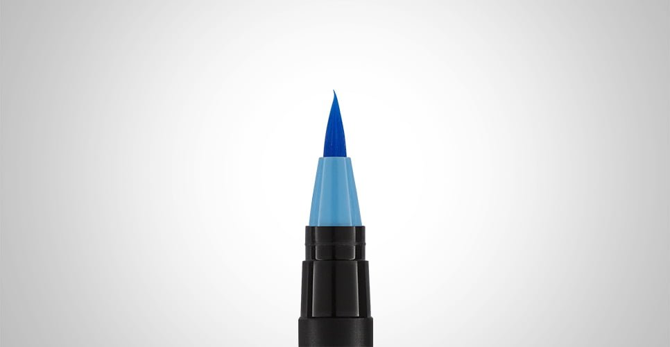 Rotulador con punta de pincel. Flexible, ideal para lettering, permite una gran modulación entre líneas gruesas y finas en caligrafía.